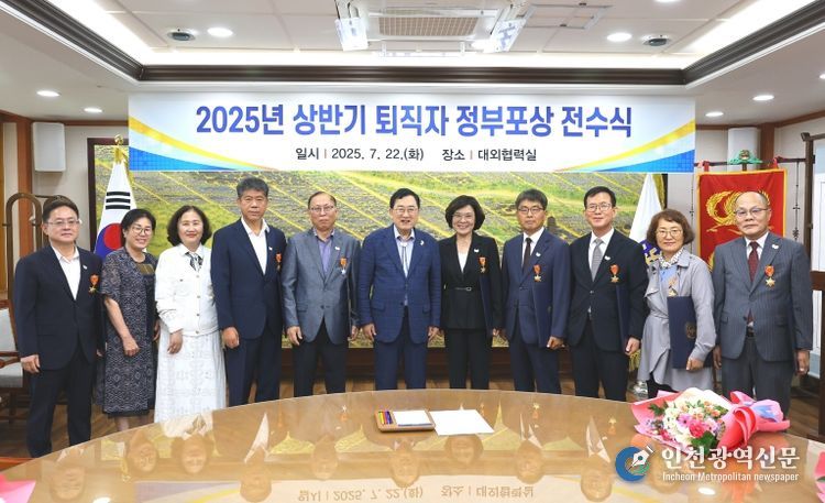 [인천광역신문] 관리자 기자 | 경주시는 22일 오전 청사內 대외협력실에서 ‘2025년 상반기 퇴직자 정부포상 전수식’을 열고, 오랜 기간 지역 행정 발전에 헌신한 퇴직 공무원 10명에게 정부포상을 전수했다.