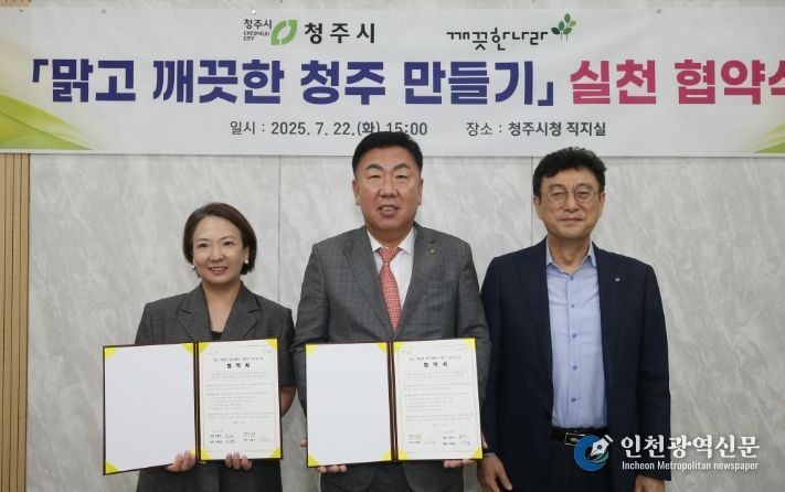 [인천광역신문] 관리자 기자 | 청주시는 22일 임시청사 직지실에서 깨끗한나라(주)와 ‘맑고 깨끗한 청주 만들기’ 실천을 위한 협약을 체결했다.