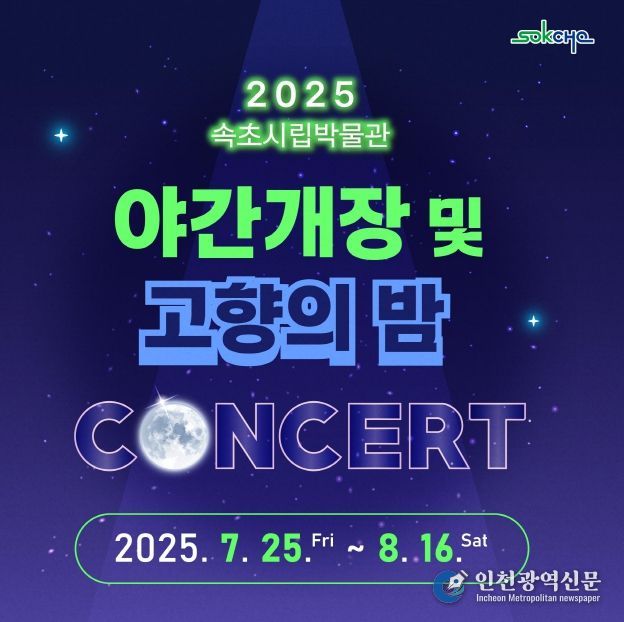 [인천광역신문] 관리자 기자 | 속초시립박물관은 여름철 성수기를 맞아 야간관광 활성화를 위해 ‘박물관 야간개장’과 전통 공연 프로그램인 ‘고향의 밤 콘서트’를 함께 운영한다.