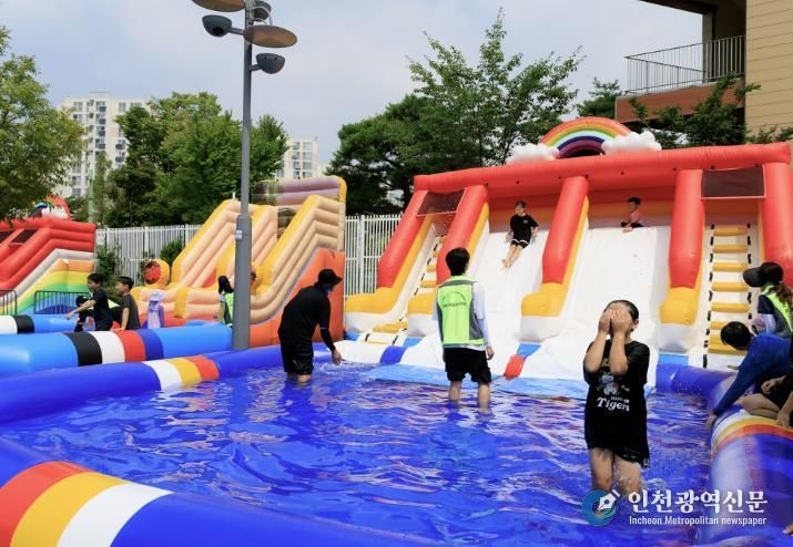 물놀이장에는 에어수영장과 물놀이의 즐거움을 한껏 높일 워터슬라이드 등이 설치된다.