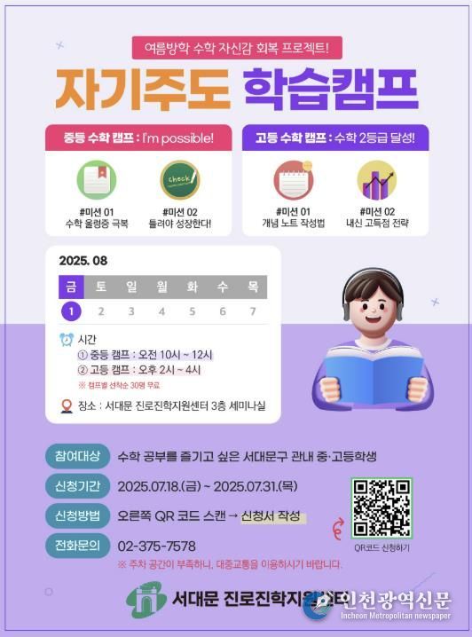자기주도 학습캠프는 8월 1일 서대문진로진학지원센터 3층 대강의실에서 개최한다.