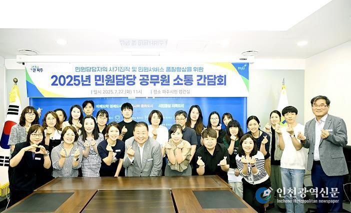 [인천광역신문] 관리자 기자 | 파주시는 지난 22일 시장 접견실에서 김경일 파주시장과 민원담당 공무원이 함께하는 2025년 민원담당 공무원 소통간담회를 개최했다고 밝혔다.