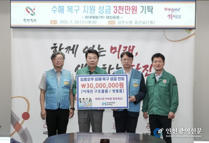 [인천광역신문] 관리자 기자 | 당진시는 현대제철에서 집중호우 피해 지원금 3000만 원을 기부했다고 23일 밝혔다.