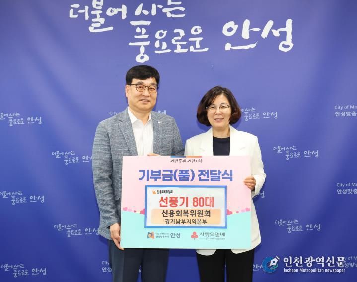 [인천광역신문] 관리자 기자 | 안성시는 7월 22일 신용회복위원회 경기남부지역본부로부터 관내 금융취약계층을 위한 여름철 생필품 지원을 목적으로 선풍기 80대를 전달받았다고 밝혔다.
