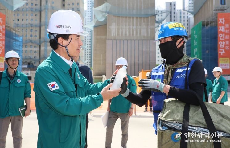 [인천광역신문] 관리자 기자 | 장마가 끝나고 폭염이 본격화된 가운데 김진태 강원특별자치도지사는 7월 23일오전 10시 춘천 삼천동의 아파트 건설 현장을 방문해 폭염 대응 실태를 점검하고, 근로자들의 건강과 안전관리에 각별한 주의를 당부했다.