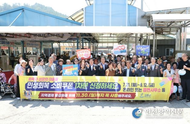 [인천광역신문] 관리자 기자 | 고흥군이 24일 동강전통시장을 찾아 민생 회복 및 지역상권 활성화를 위해 지급 중인 ‘민생회복 소비쿠폰 신청’을 독려하는 캠페인을 펼쳤다고 밝혔다.
