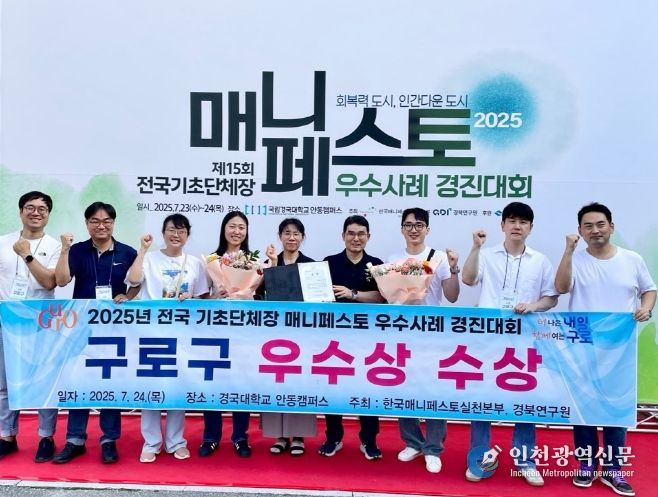 [인천광역신문] 관리자 기자 | 구로구가 7월 24일 경북 안동에서 열린 ‘2025년 전국 기초단체장 매니페스토 우수사례 경진대회’에서 공동체 강화 분야 ‘우수상’을 수상했다.