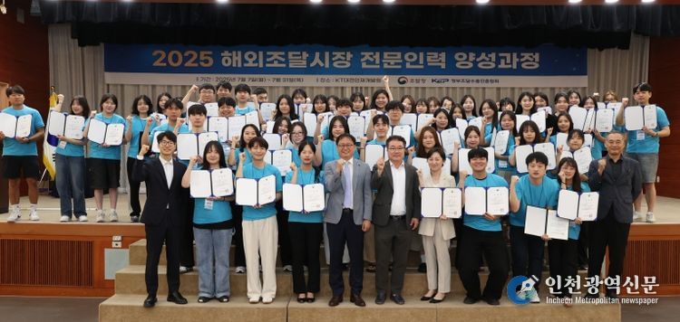 [인천광역신문] 관리자 기자 | 조달청(차장 백승보)은 KT 대전인재개발원에서'2025년도 해외조달시장 전문인력 양성 과정'의 수료식을 개최하고 총 60명에게 수료증을 수여했다.