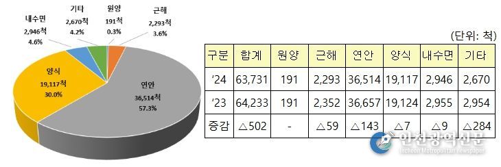 [인천광역신문] 관리자 기자 | 해양수산부는 2024년 국내 등록어선이 2023년보다 502척 줄어든 63,731척으로 집계됐다고 밝혔다.