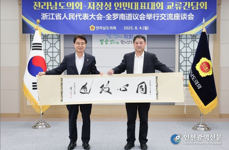 [인천광역신문] 관리자 기자 | 전라남도의회는 4일 오후 도의회에서 중국 저장성 인민대표대회 대표단을 공식 접견하고, 양 지역 지방의회 간 우호 교류 및 협력 확대 방안을 논의했다.