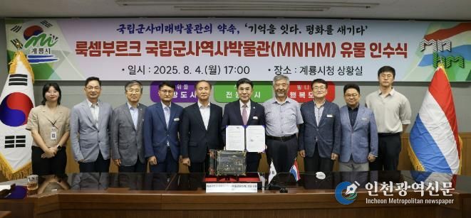 [인천광역신문] 관리자 기자 | 계룡시는 4일 시청 상황실에서 룩셈부르크 국립군사역사박물관이 소장 중이던 6.25 전쟁 참전용사 유물을 공식적으로 인수하는 인수식을 가졌다.