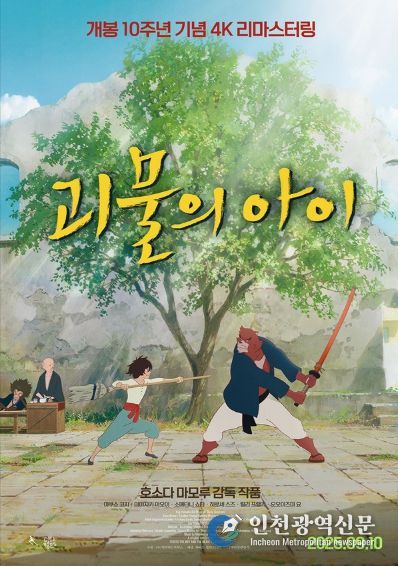 [인천광역신문] 관리자 기자 | 오는 9월 10일(수), 개봉 10주년 기념 4K 리마스터링 재개봉을 확정한 호소다 마모루 감독의 판타지 감동 대작 ‘괴물의 아이’가 메인 포스터와 스페셜 예고편을 공개했다.[제목: 괴물의 아이 | 감독/각본: 호소다 마모루 | 수입: ㈜얼리버드픽쳐스 | 배급: 와이드 릴리즈㈜]