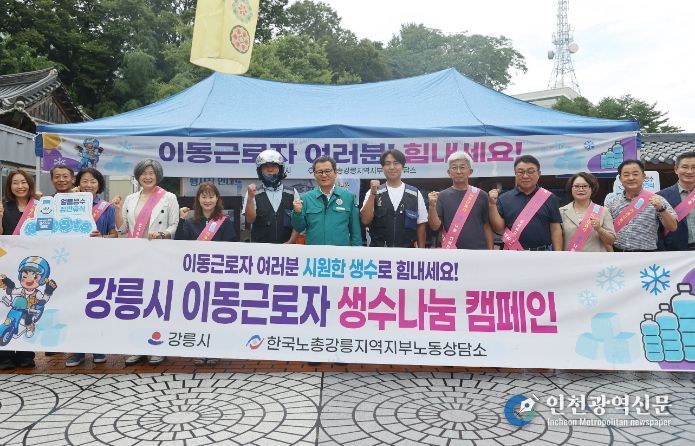 [인천광역신문] 관리자 기자 | 강릉시는 최근 폭염으로 인한 건강 피해를 예방하기 위해 14일 오후 2시부터 강릉대도호부 관아 앞에서 배달·택배 종사자 등 이동근로자를 대상으로 ‘생수 나눔 캠페인’을 실시한다.