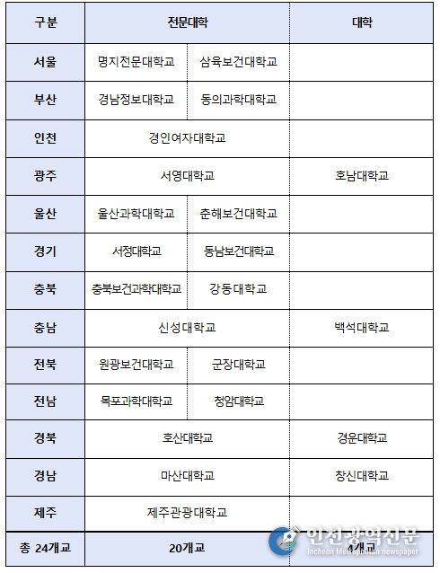 양 부처는 민간 전문가를 포함한 선정위원회를 구성했고, 13개 광역지방자치단체*가 추천한 양성대학 후보 대학을 심의하여 총 24개 대학을 양성대학으로 최종 선정했다.