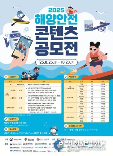 [인천광역신문] 관리자 기자 | 해양수산부와 해양경찰청은 「2025 해양안전 콘텐츠 공모전」을 8월 25일부터 10월 23일까지 개최한다고 밝혔다.
