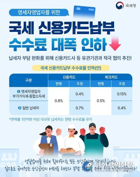 [인천광역신문] 관리자 기자 | 영세자영업자를 위한 국세 신용카드납부 수수료 대폭 인하!