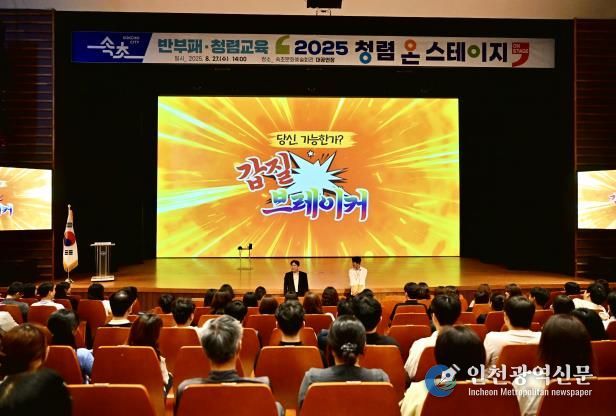 [인천광역신문] 관리자 기자 | 속초시가 지난 8월 27일 속초문화예술회관 대강당에서 전직원을 대상으로 참여·소통형 청렴 교육인 ‘청렴 온 스테이지(On Stage)'를 개최했다.