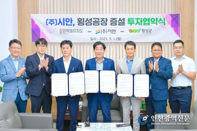 [인천광역신문] 관리자 기자 | 횡성군과 강원특별자치도는 1일 횡성군청에서 ㈜시안과 횡성공장 증설 투자협약을 체결했다.