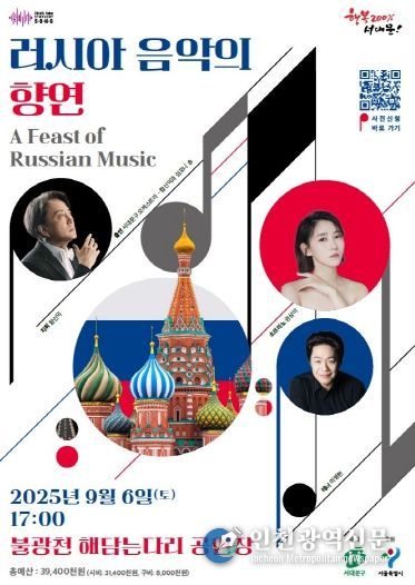 [인천광역신문] 최훈 기자 | 서대문구가 이달 6일 토요일 오후 5시 불광천 해담는다리 공연장에서 주민들과 함께하는 ‘러시아 음악의 향연 – A Feast of Russian Music’을 개최한다.