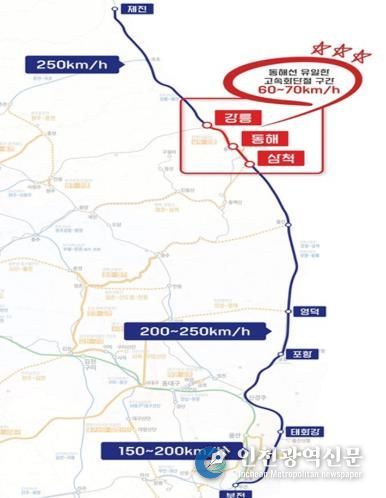 사업이 완료되면 철도 이동 시간이 최대 1시간 40분 단축되며, 강릉~부산 구간은 현재 5시간대에서 약 3시간 20분으로 단축돼 환동해권 접근성과 물류 경쟁력이 획기적으로 향상될 전망이다.