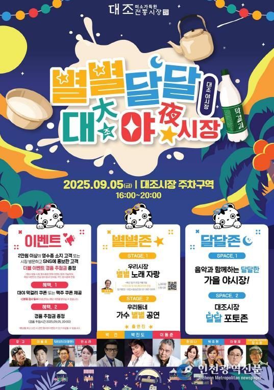 [인천광역신문] 최훈 기자 | 서울 은평구는 오는 5일 오후 4시부터 8시까지 대조시장에서 ‘별별달달 대(大)야(夜)시장’을 연다고 밝혔다.