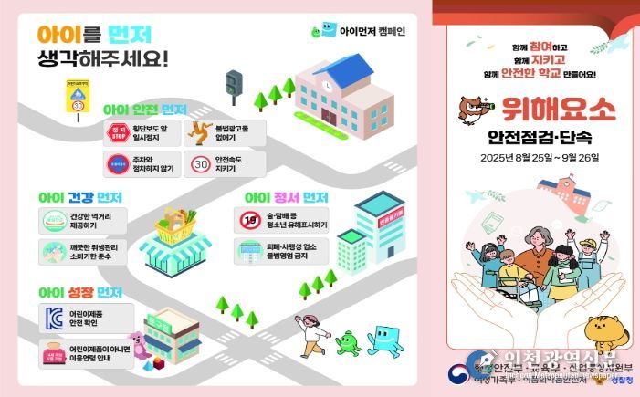 이번 점검은 개학기를 맞아 어린이가 안전하게 생활할 수 있는 환경을 조성하기 위해 관계부처 합동으로 진행 중인 ‘개학기 초등학교 주변 위해요소 집중점검’ (8.25.~9.26.)의 일환으로 실시됐다.