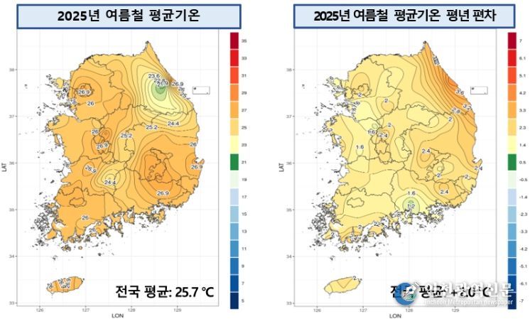 [인천광역신문] 관리자 기자 | 기상청은 2025년 여름철(6~8월) 기후 특성과 원인에 대한 분석 결과를 발표했다. 올여름은 짧은 장마철과 이른 더위 시작, 무더위와 집중호우 반복이 주요 특징이었다.