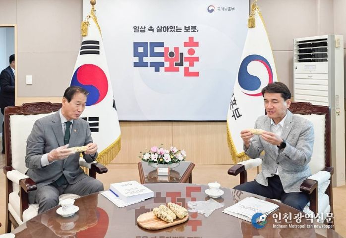 [인천광역신문] 관리자 기자 | 김진태 강원특별자치도지사는 9월 5일 서울지방보훈청을 방문해 권오을 국가보훈부 장관과 면담을 갖고, 참전명예수당 배우자 승계 서명부를 전달하며 도의 주요 보훈 현안에 대한 적극적인 지원을 요청했다.