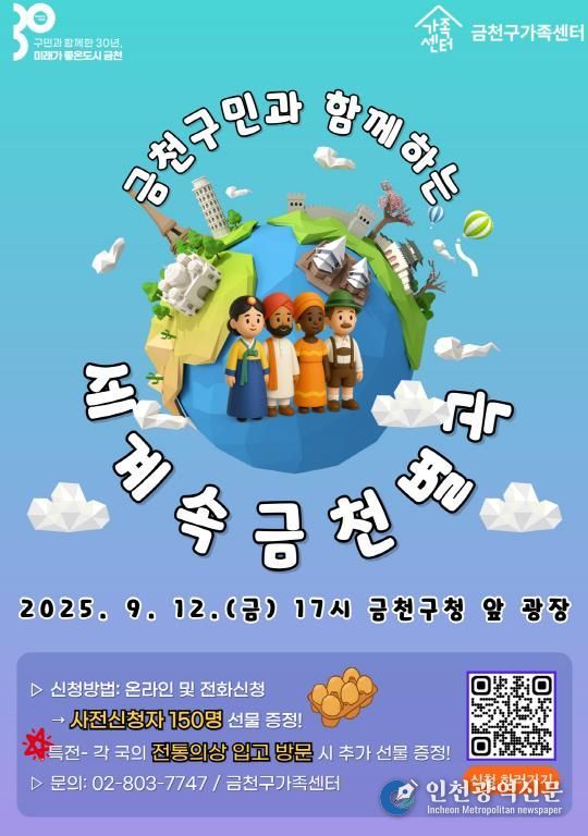 [인천광역신문] 최훈 기자 | 금천구는 9월 12일 오후 5시 구청 광장에서 2025년 다문화축제 ‘세계 속 금천별곡’을 개최한다고 밝혔다.