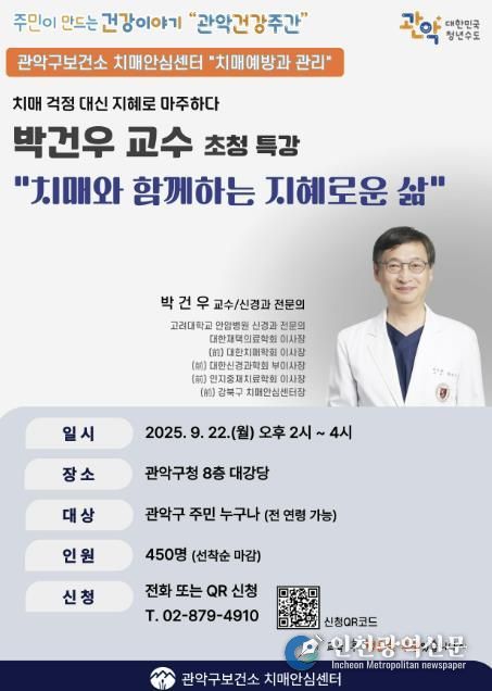 이러한 성과를 바탕으로, 구는 오는 9월 22일(월) 오후 2시, 구청 8층 대강당에서 치매극복주간을 맞아 주민건강특강을 개최한다.