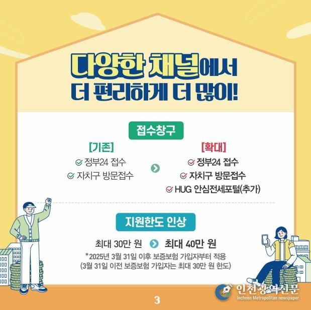 특히 올해 4월부터는 지원금 상한이 기존 최대 30만 원에서 40만 원으로 인상되어 경제적 실효성이 더욱 높아졌으며, 신청 절차도 한층 간소화됐다. 정부24와 방문 접수 외에도 ‘안심전세 앱’을 통한 모바일 신청이 가능해졌고, 별도 서류 발급 없이 간편한 접수가 가능하다.