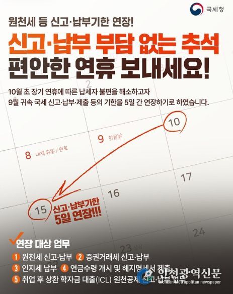 [인천광역신문] 관리자 기자 | 원천세 등 신고·납부기한 연장!