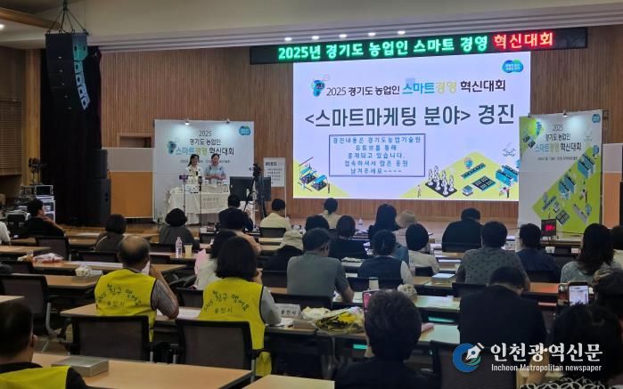 [인천광역신문] 관리자 기자 | 경기도농업기술원은 11일 농업과학교육관에서 ‘2025년 경기도 농업인 스마트경영 혁신대회’를 열고 총 12개 팀을 수상작으로 선정했다. 이번 대회는 농업인의 온라인 시장 개척과 AI 활용 역량을 강화하고, 우수사례를 확산하기 위해 마련됐다.