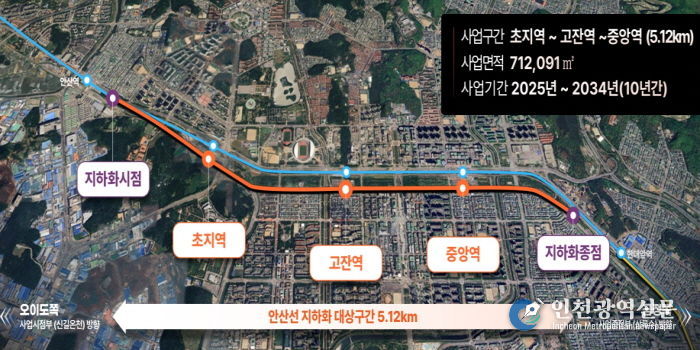 ‘안산선 지하화 통합개발사업’은 안산시 초지역에서 중앙역에 이르는 약 5.12㎞ 구간을 지하화하고 상부를 개발하는 사업이다. 지난 2월 19일 국토교통부의 선도사업으로 선정됐으며, 올해 12월 발표 예정인 ‘철도지하화 통합개발 종합계획’ 수립 전 선제적인 사업추진이 가능하다.