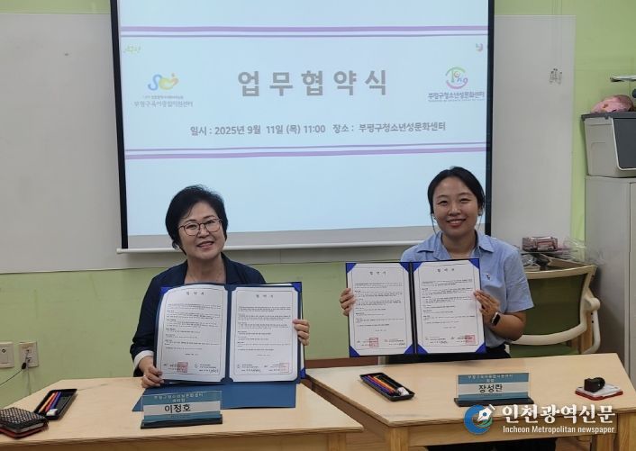 [인천광역신문] 최예준 기자 | 부평구 청소년성문화센터는 지난 11일 부평구육아종합지원센터와 업무 협약을 체결했다.