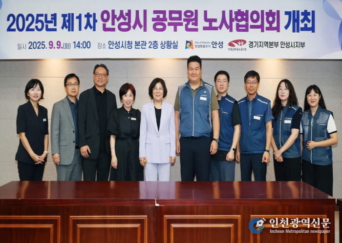 [인천광역신문] 관리자 기자 | 안성시는 지난 9일 시청 2층 상황실에서 '2025년 제1차 공무원 노사협의회'를 개최했다고 밝혔다.