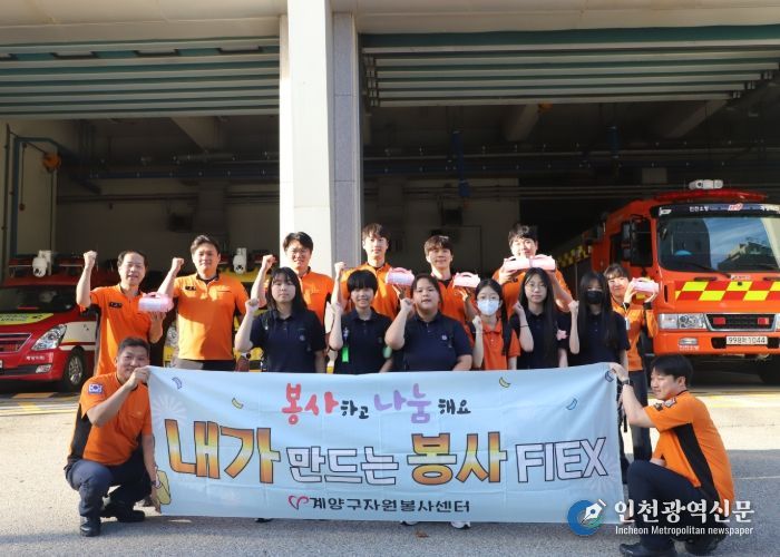 이번 나눔은 계양구 자원봉사센터가 운영하는 청소년 봉사 프로그램 “내가 만드는 봉사 FLEX”의 일환으로 마련된 것으로, 학생들이 지역사회의 안전을 위해 헌신하는 소방관들에게 감사의 마음을 전하고자 직접 만든 바크초콜릿과 손편지를 준비해 소방서에 전달했다.