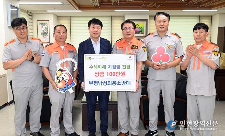 [인천광역신문] 최예준 기자 | 부평구는 12일 인천부평소방서 부평남성의용소방대로부터 최근 호우 피해를 입은 가구를 돕기 위한 성금 100만원을 전달 받았다.