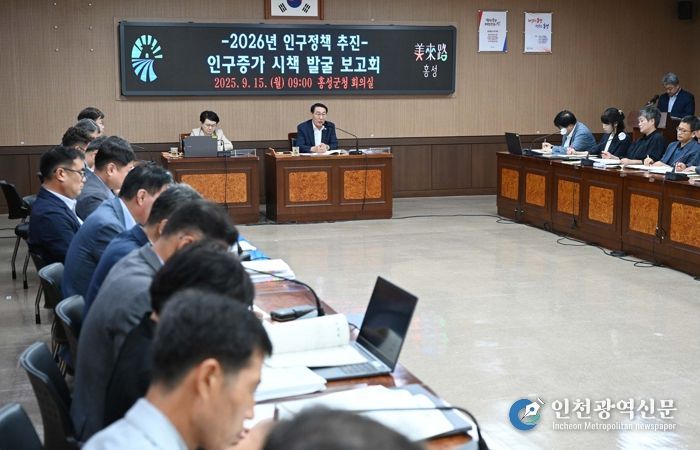 [인천광역신문] 관리자 기자 | 홍성군은 지난 15일 군청 회의실에서 ‘인구증가 시책 발굴 보고회’를 열고, 부서별 특성과 지역 여건을 반영한 총 67건의 인구증가 시책을 발굴했다고 밝혔다.
