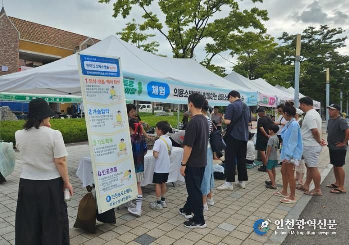 체험 부스에서는 연 만들기, 디퓨저 만들기, ‘K-POP 랜덤 플레이댄스’ 게임, ‘캘리그라피’, 심폐소생술 등의 프로그램이 운영돼 주민들에게 다양한 볼거리를 선사했다.