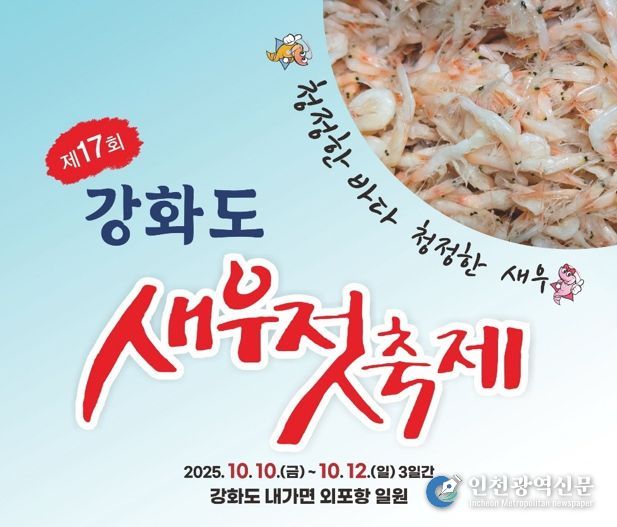[인천광역신문] 최예준 기자 | 강화군은 추석 연휴 직후인 오는 10월 10일부터 12일까지 3일간 내가면 외포항 일원에서 ‘제17회 강화도 새우젓 축제’를 개최한다.