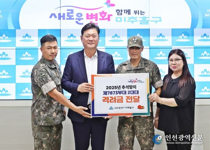 [인천광역신문] 최예준 기자 | 인천 미추홀구는 다가오는 추석 명절을 맞아 지난 12일 구청장실에서 국토방위와 국가안보를 위해 노력하는 군 장병들의 노고를 격려하기 위해 관교동 승학산에 소재한 육군 제7873부대 2대대에 격려금을 전달했다.
