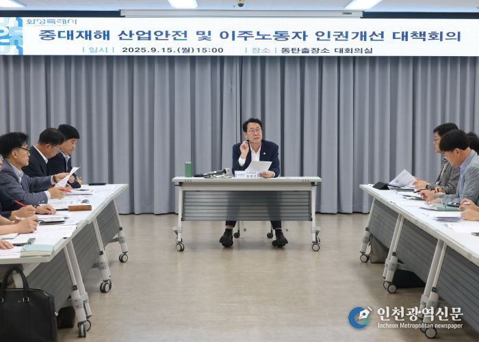 [인천광역신문] 관리자 기자 | 정명근 화성특례시장은 15일 동탄출장소 대회의실에서 ‘중대재해 산업안전 및 이주노동자 인권개선 대책 회의’를 열고 안전하고 공정한 노동 환경 조성을 위한 방안을 논의했다.