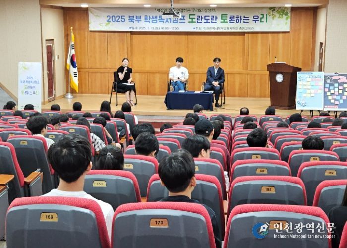 [인천광역신문] 최예준 기자 | 인천북부교육지원청은 13일 경인교육대학교 인천캠퍼스에서 관내 중학교 독서동아리 학생과 교사 120명과 함께 ‘북부 독서토론 캠프, 도란도란 토론하는 우리’를 운영했다.