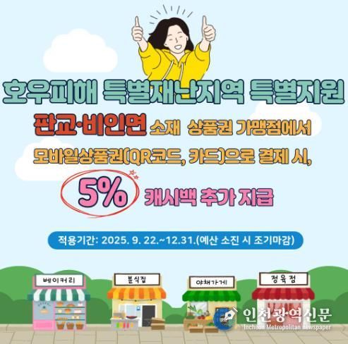 [인천광역신문] 관리자 기자 | 서천군은 오는 22일부터 판교면․비인면 소재 모바일(카드) 서천사랑상품권 가맹점에서 결제 시 결제금액의 5% 추가 캐시백을 지급한다.
