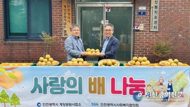 [인천광역신문] 최예준 기자 | 인천광역시 계양공원사업소는 서구 연희동 연희공원 별관에서 장고개공원 배나무 단지에서 수확한 배를 지역사회에 기부하는 행사를 개최했다고 밝혔다.