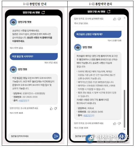 [인천광역신문] 최훈 기자 | 양천구는 구청 홈페이지를 통해 인공지능(AI) 기반 온라인 질의응답 시스템인 ‘AI 챗봇’ 서비스를 본격 운영한다고 17일 밝혔다.