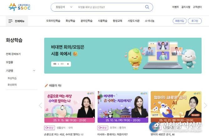 시흥교육캠퍼스 쏙(SSOC)에서 운영 중인 AI 화상학습 시리즈는 매회 300여 명이 신청하고 실시간으로 참여할 정도로 큰 호응을 얻고 있다. 스피치, 노션, 책쓰기 등 전문 분야 화상 강좌 역시 비슷한 수준의 신청과 참여가 이어지며 꾸준한 인기를 끌고 있어, 시민들의 다양한 학습 수요를 충실히 반영하고 있다.