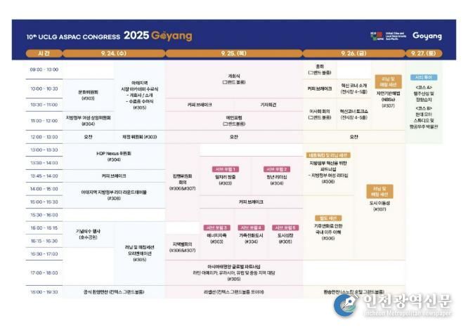 [인천광역신문] 관리자 기자 | 고양특례시에서 열리는 ‘2025 제10차 세계지방정부연합 아시아·태평양지부(UCLG ASPAC) 고양 총회’가 일주일 앞으로 다가왔다.