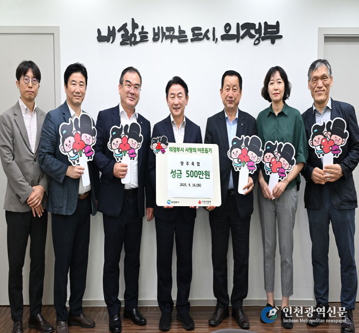 [인천광역신문] 관리자 기자 | 의정부시는 9월 16일 양주축산업협동조합이 의정부시지역아동센터연합회 희망사다리를 지원하기 위해 성금 500만 원을 기부했다고 밝혔다.